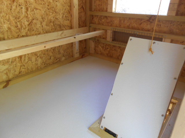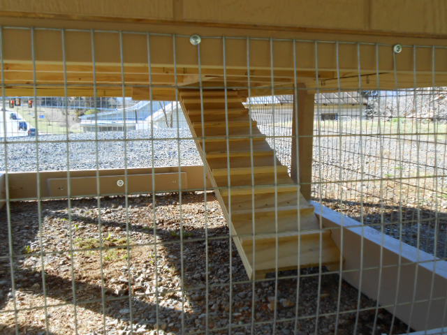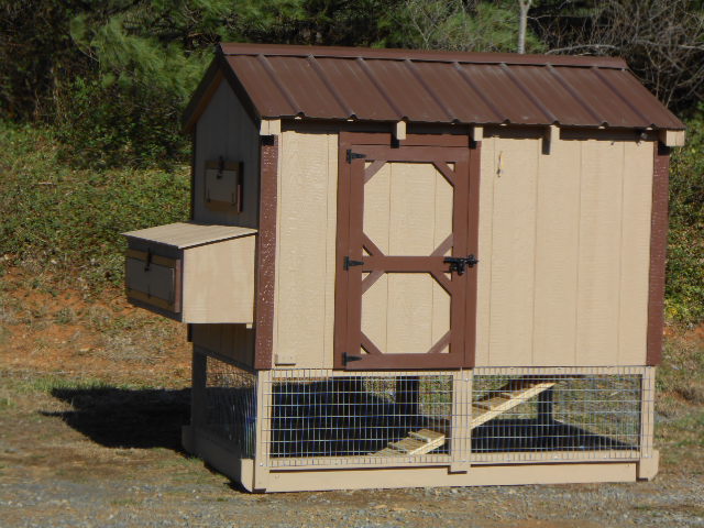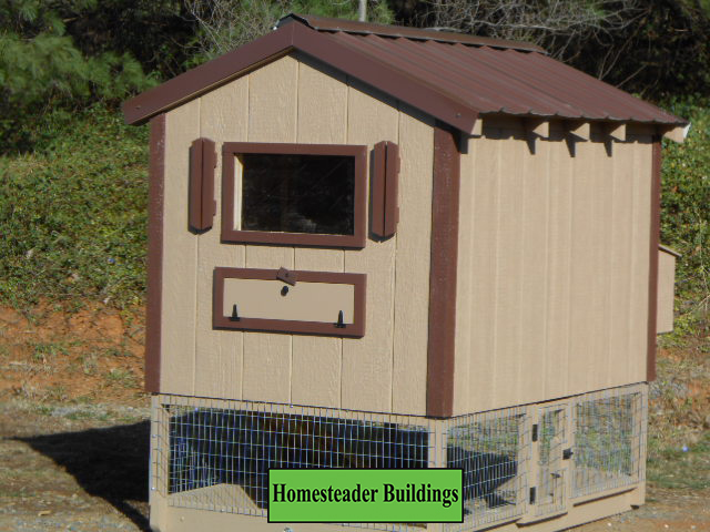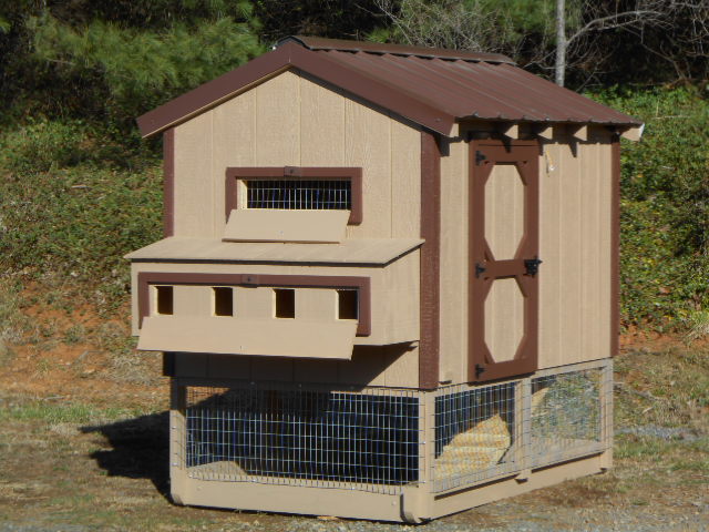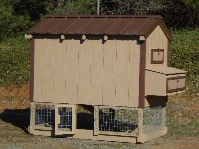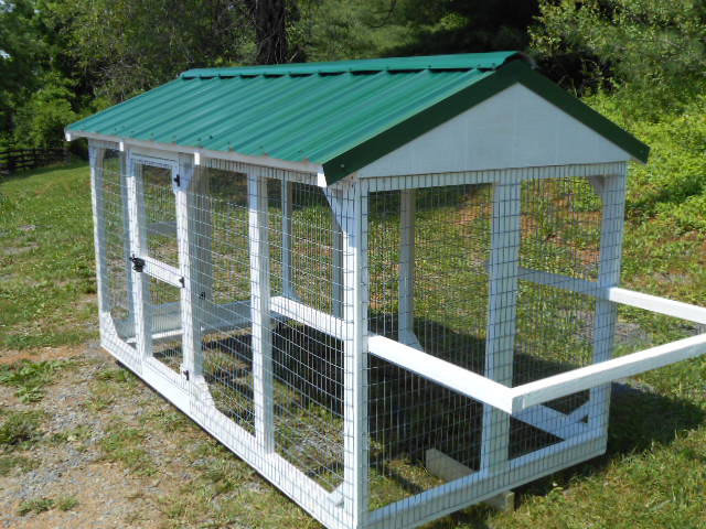 against chicken coop for access to outside for chickens. A nest box, roost, and enclosure on end can be added for