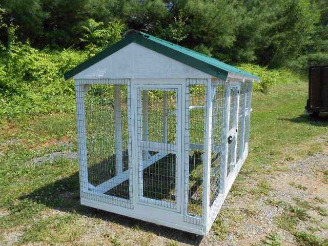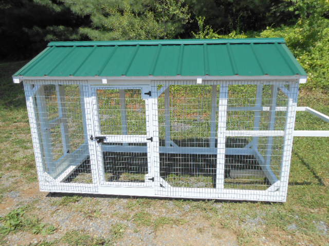 Wire is 1"x 2" welded wire. Roof is painted metal. Side access door can be on either side. Rear end gate made to be